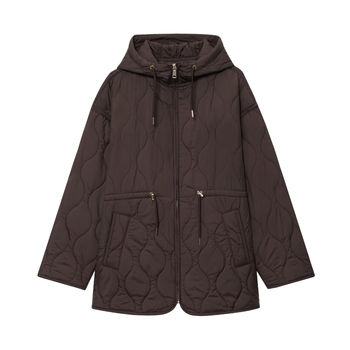 2025 осеннее Новое повседневное женское Стеганое пальто с капюшоном и поясом без 8372281 вязаное однотонное для внешней торговли, оптовая продажа